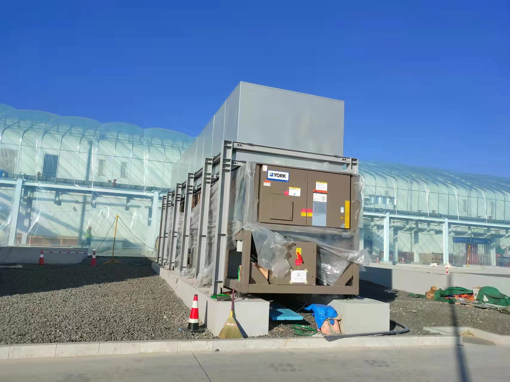 约克公司邀请我公司针对该项目采用的0359型空调室外机专门设计了一款降噪设备。经过我公司数据模拟及现场实测,经多次试验,研制出一款专门针对数据中心制冷空调室外机机的降噪设备,该降噪设备具有安装方便,结构坚固,降噪效果高等优点。